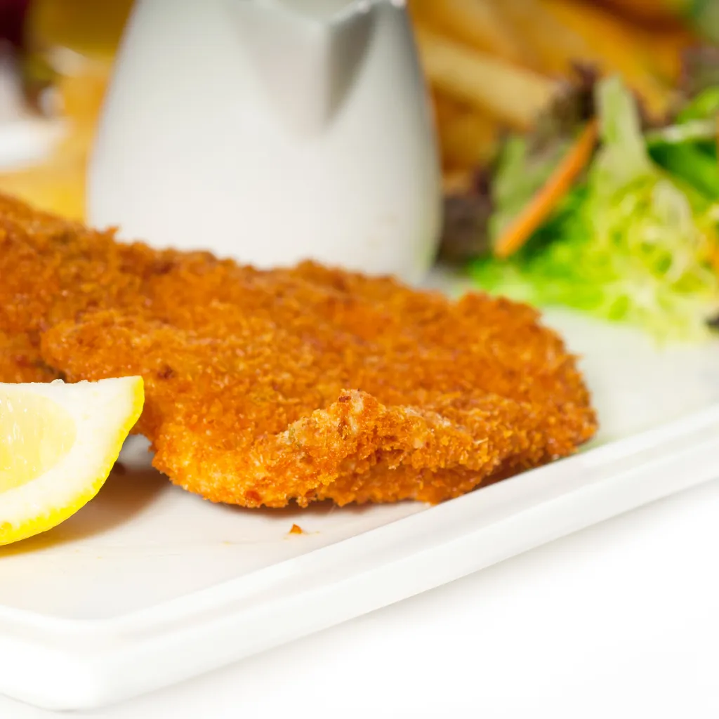Otroški dunajski zrezek, pomfri krompir in kinder jajček - Panda menu